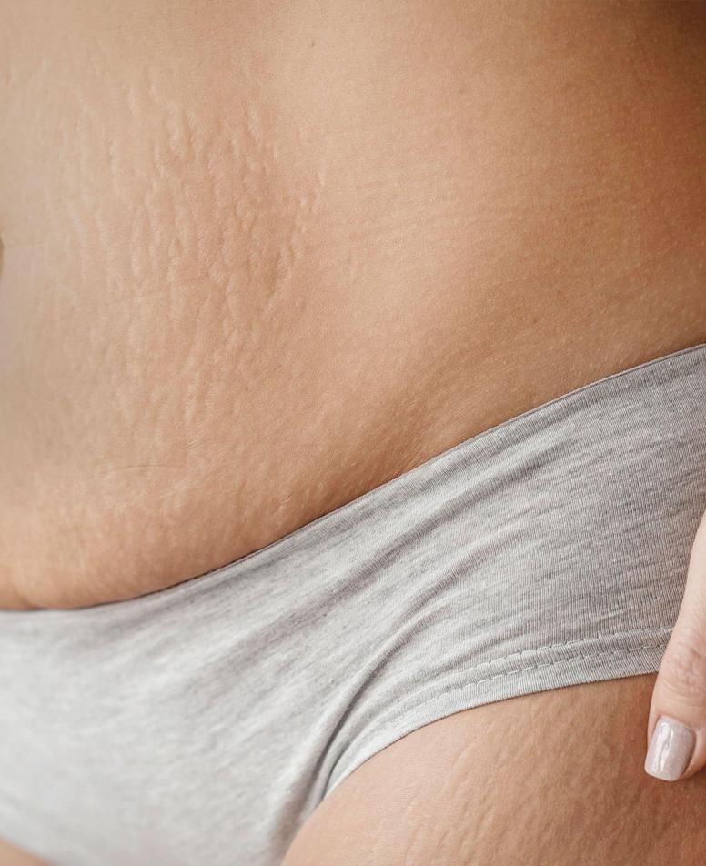 Stretch marks are a common aesthetic concern that affects the structure and appearance of the skin.