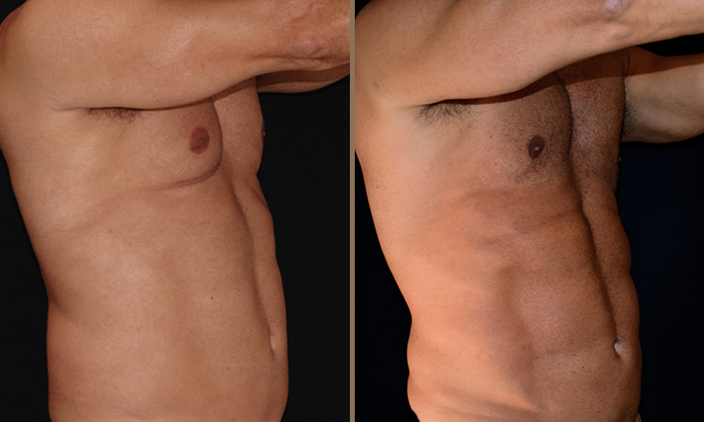 Στο στήθος εξαρτάται από την περίπτωση. Μπορεί σαφέστατα να αφαιρεθεί λίπος αλλά σε κάποιες περιπτώσεις συνδυάζουμε τη μέθοδο αυτή με την επέμβαση γυναικομαστίας όπου αφαιρείται ο μαζικός αδένας.